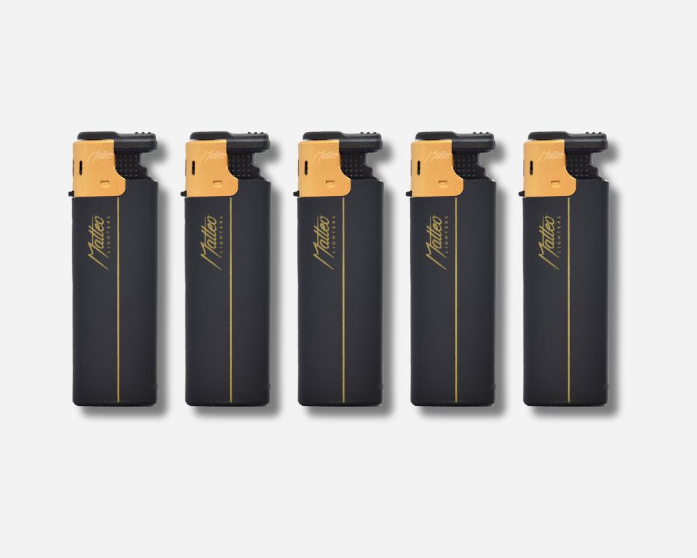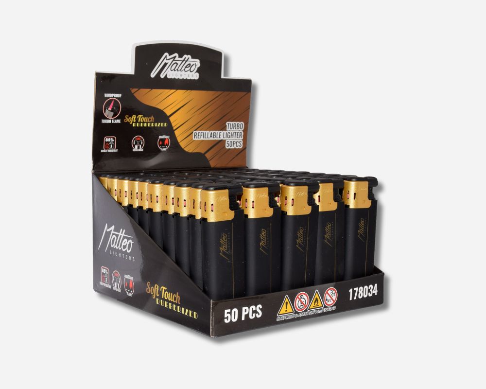 Turbo Flame Lighter Matteo – Rubberized Gold Black Design