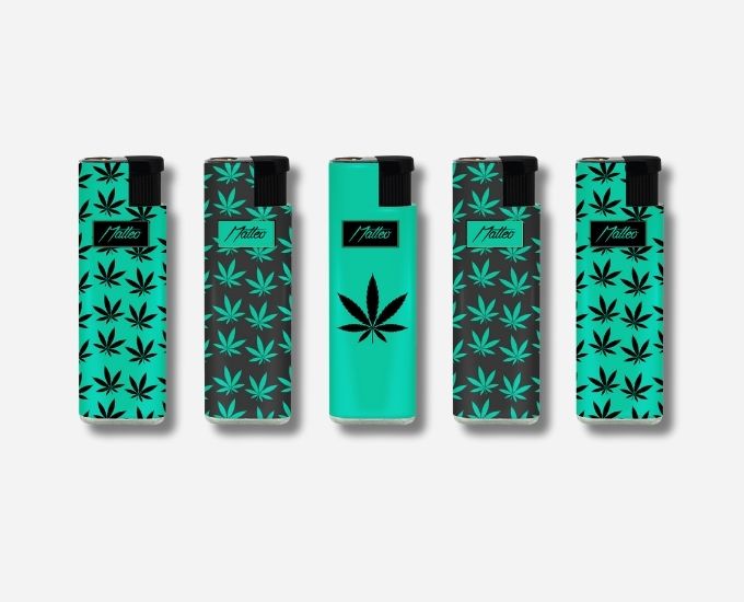Turbo Flame Lighter Matteo – Metal Case, Cannabis Patterns